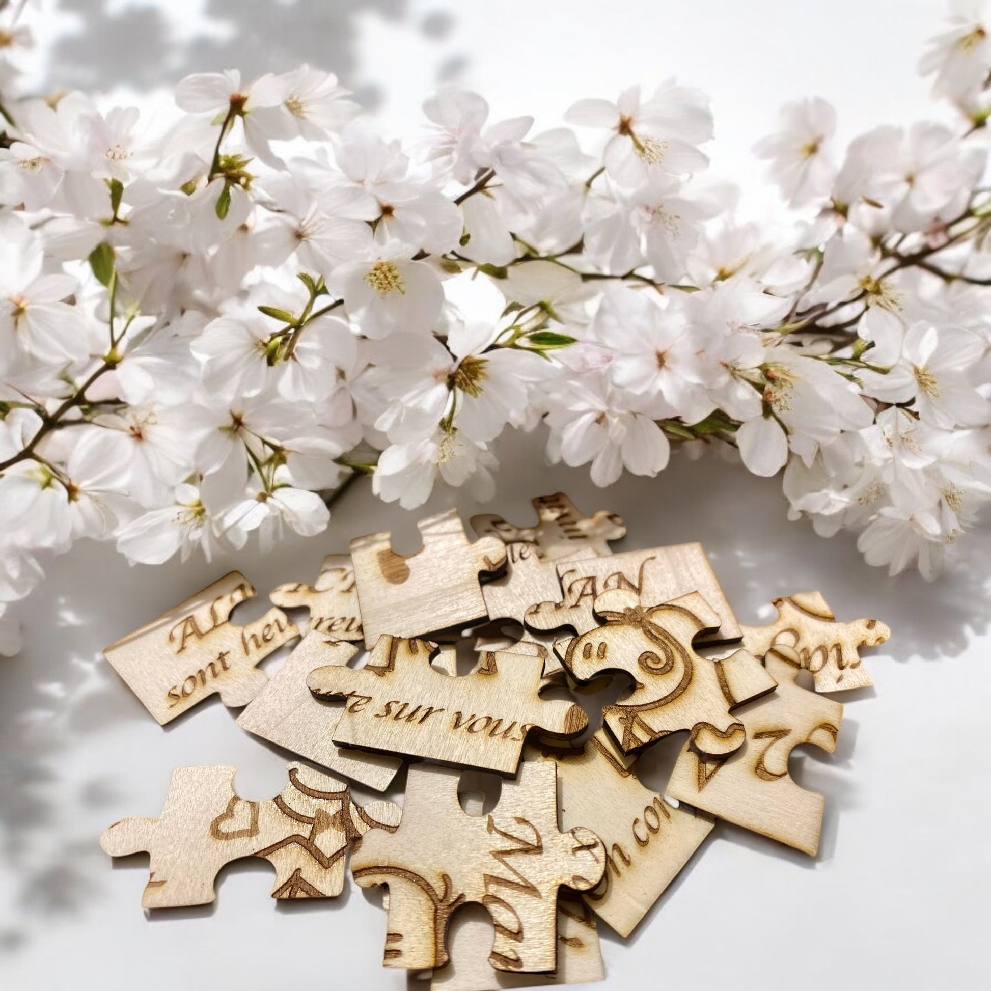 Avec les Faire-parts puzzle « Mariés » en Bois personnalisables , vos invités découvriront de manière originale la date, l'heure de votre mariage. Les pièces du puzzle seront emballées dans un pochon en Jute Blanc motif Cœur ce qui laissera une « SURPRISE TOTALE» à vos invités.